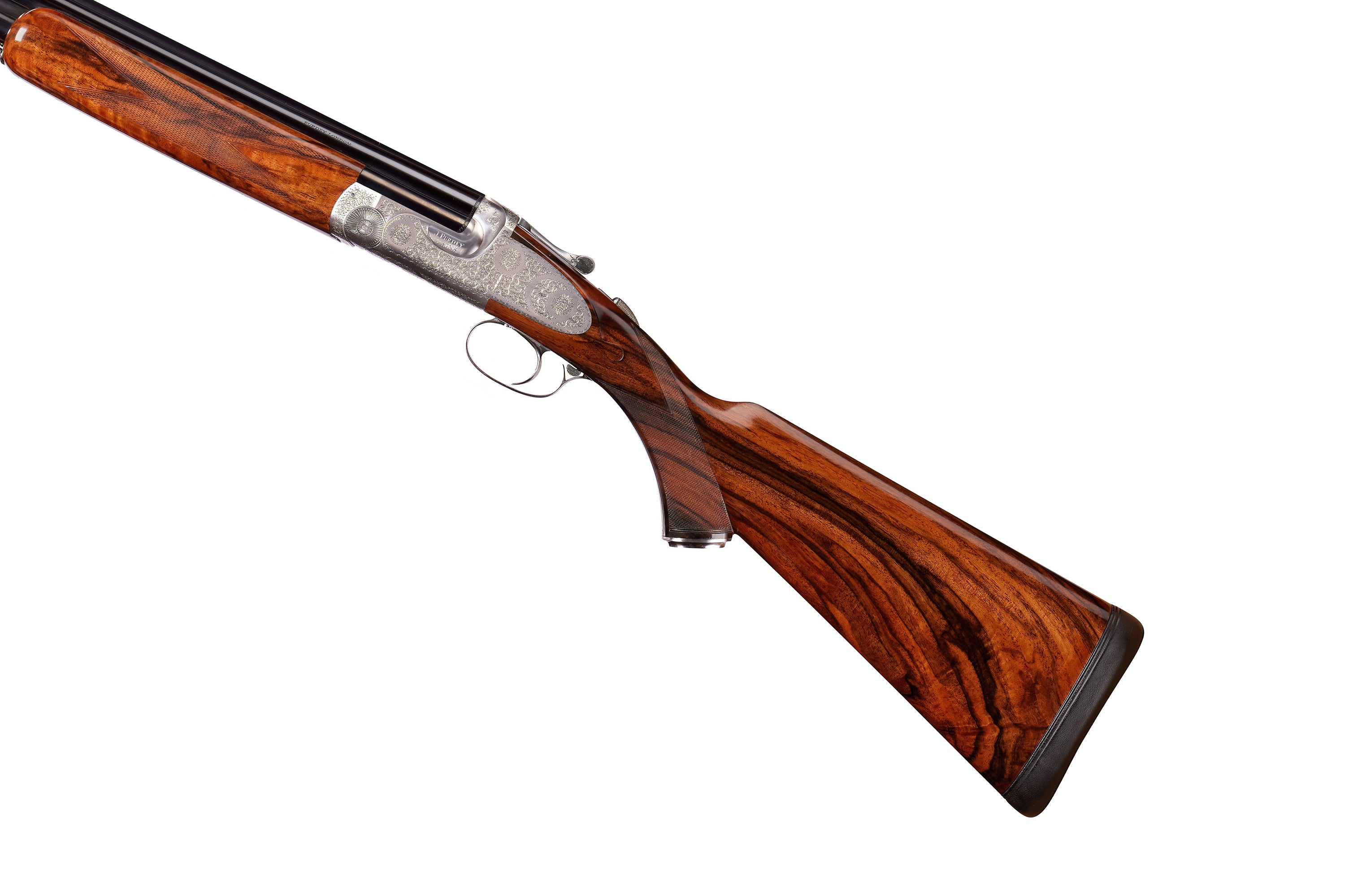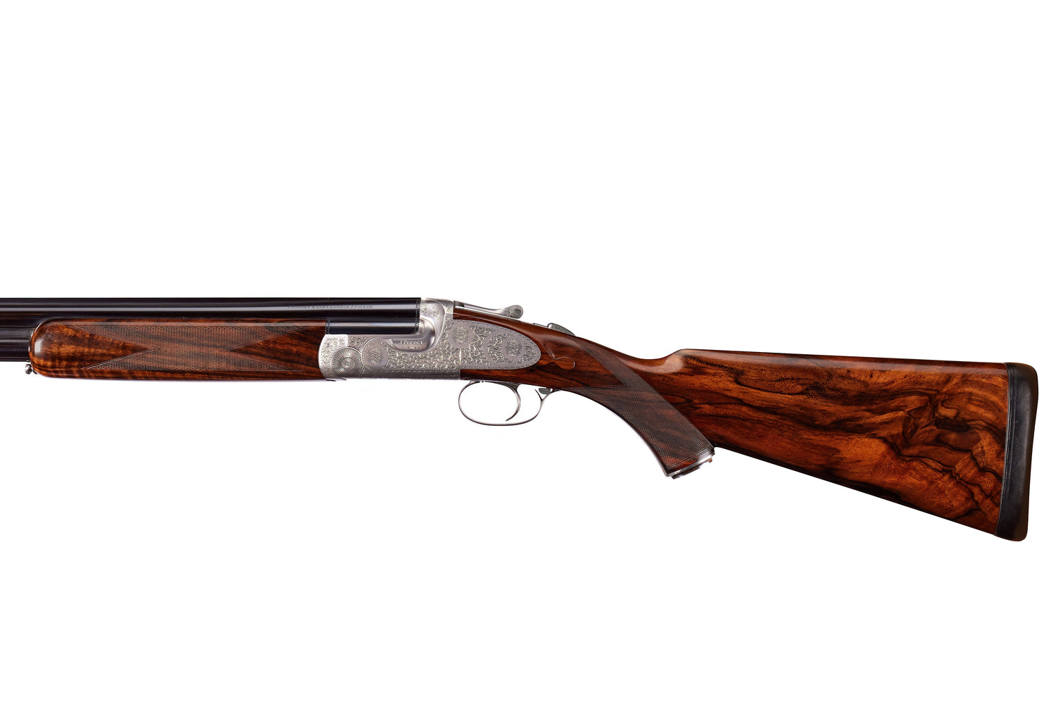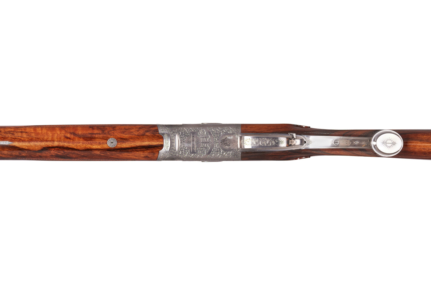 The ultra-round action-body is engraved with our traditional rose and scroll pattern, with a silver finish, and has a detachable non-selective single trigger unit. The well-figured stock is finished with a pistolgrip, engraved pistolgrip-cap and leather-covered recoil-pad, and the 30in. barrels have a matt solid top-rib.