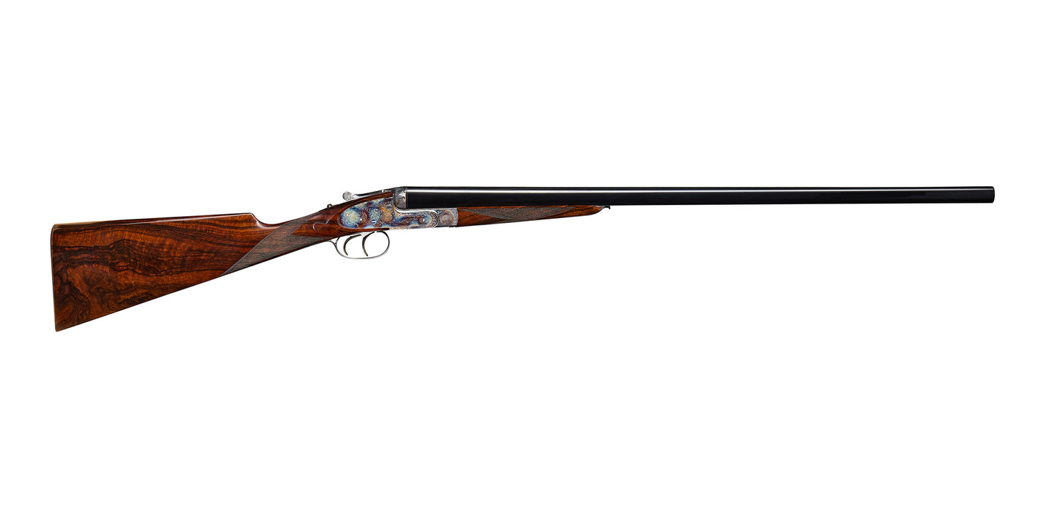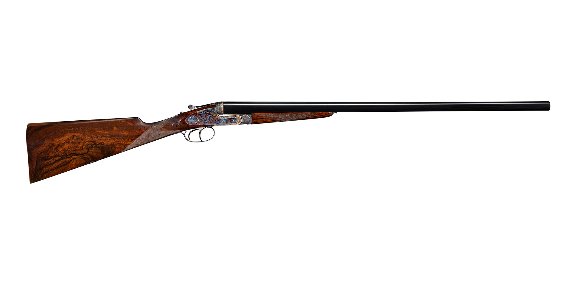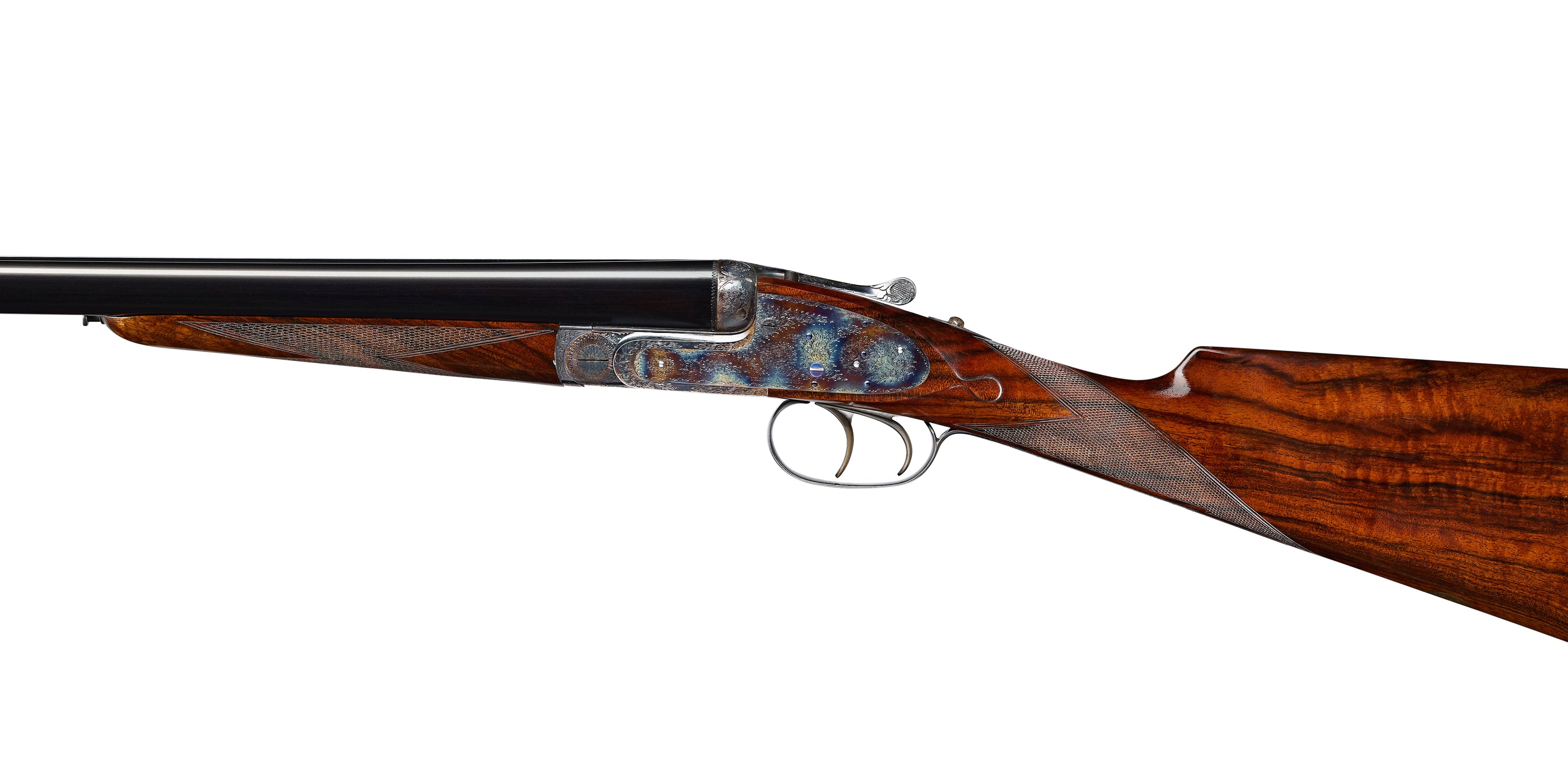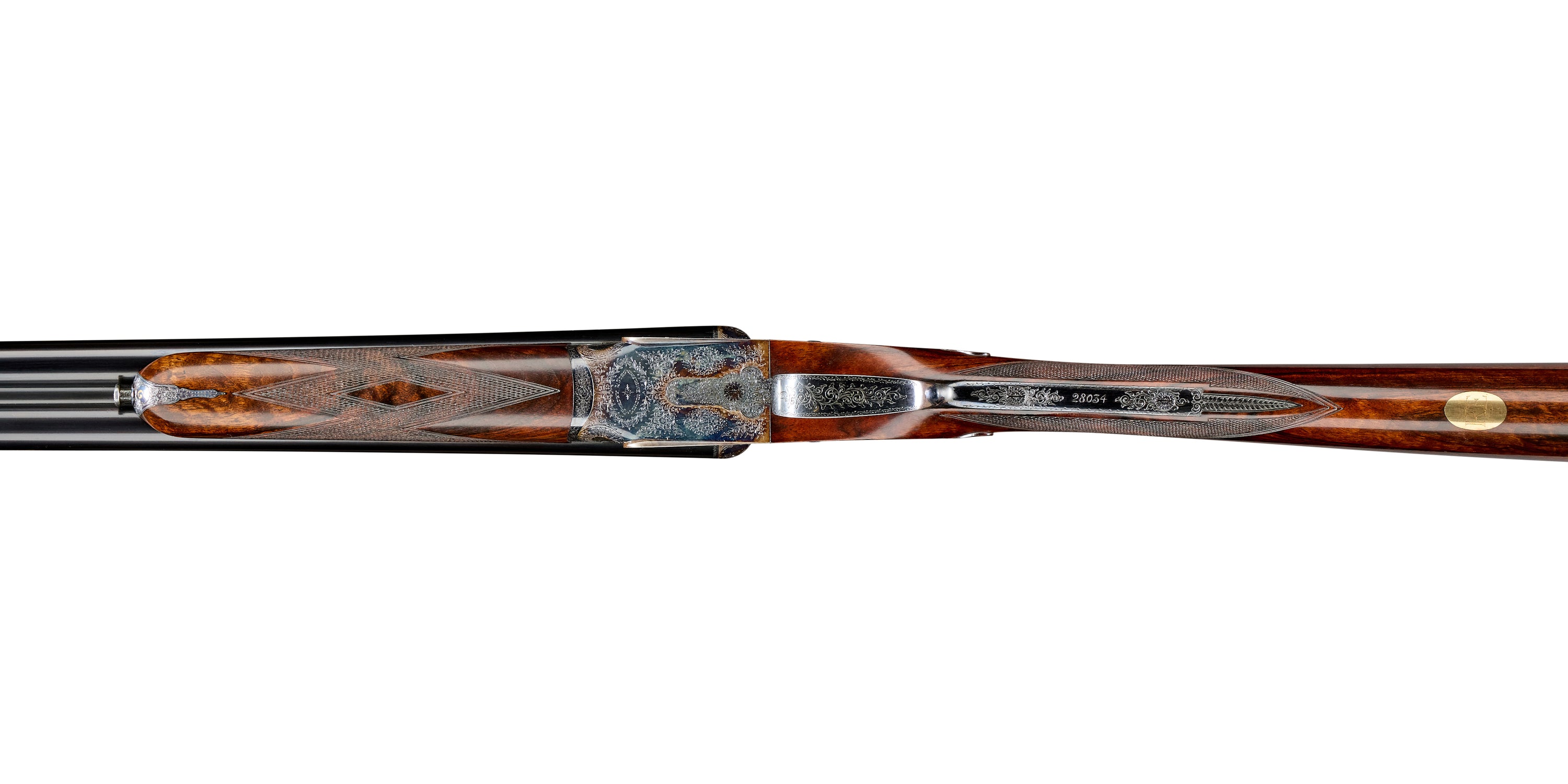 Completed in 1975, numbered ‘1’ & ‘2’ in Gold, these guns have seen very little use since leaving our factory. The square bar actions are engraved with our traditional Rose & Scroll pattern, and are colour-case hardened. The double triggers have a flat trigger-guard, the highly figured stocks have straight-hand grips, gold ovals, and leather-covered recoil-pads. The barrels have game-ribs.